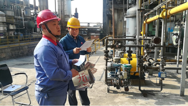 “反應(yīng)液送出前,現(xiàn)場(chǎng)閥門已經(jīng)所有確認(rèn),反應(yīng)液分析數(shù)據(jù)合格,現(xiàn)已切入合格槽。”“預(yù)熱器走旁通,進(jìn)出口閥門已關(guān)閉,物料已倒空,現(xiàn)可更換視鏡!”近日,有機(jī)分廠相繼在各工序生產(chǎn)現(xiàn)場(chǎng)進(jìn)行年度實(shí)踐考試。