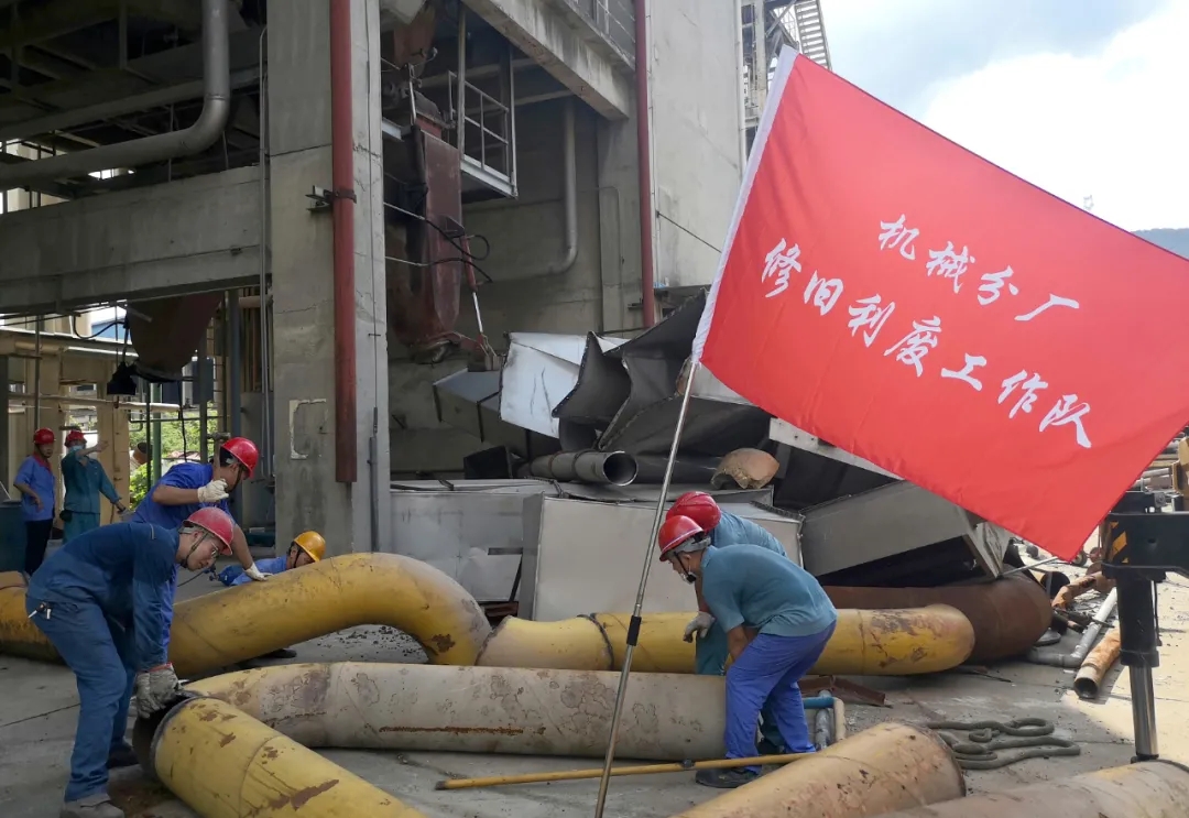 8月3日上午,機(jī)械分廠修舊利廢工作隊正式成立,工作隊十幾名成員前往醋酐現(xiàn)場整理、分割維修可再利用材料,拉開了修舊利廢工作的序幕。