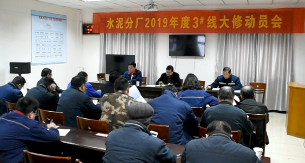 2019年水泥分廠3#線大修即將展開。2月18日下午,公司在水泥分廠會(huì)議室召開3#線大修動(dòng)員會(huì)。股份公司常務(wù)副總經(jīng)理王松苗,公司相關(guān)單位主要負(fù)責(zé)人及水泥分廠導(dǎo)班子、骨干參加會(huì)議。設(shè)備計(jì)量部部長(zhǎng)錢光海主持會(huì)議。