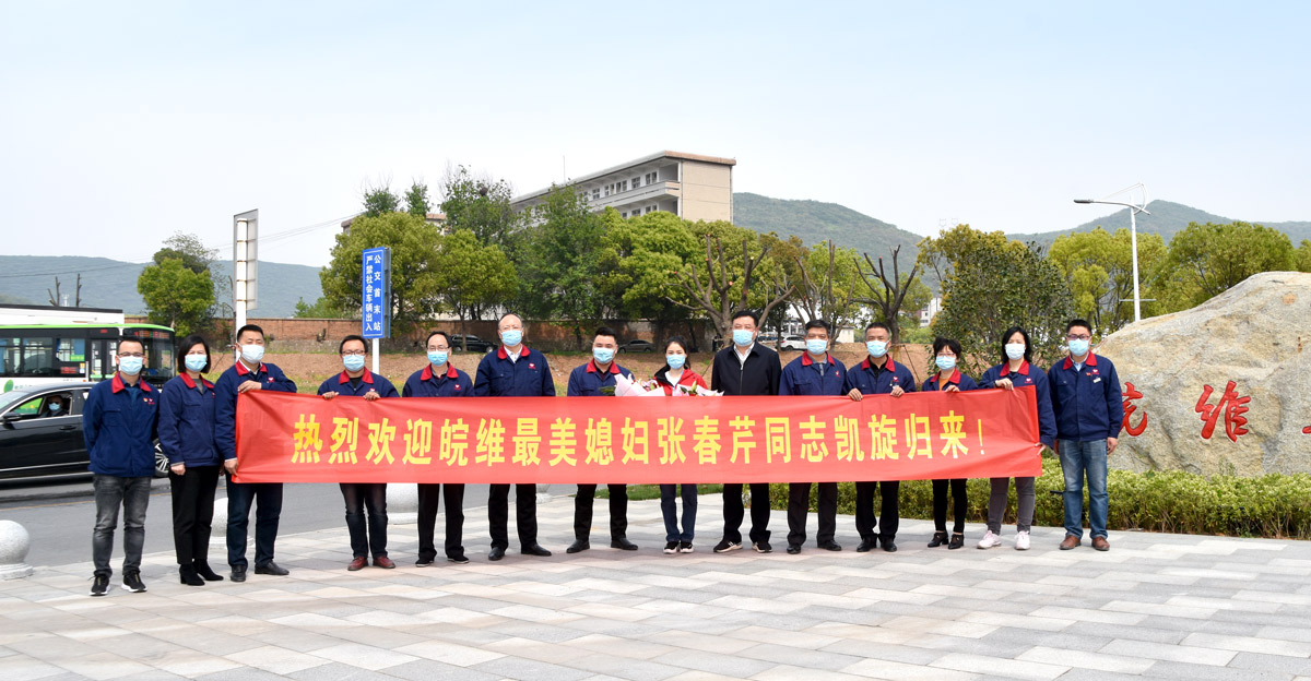 白衣執(zhí)甲慷慨行,今日勝利凱旋歸。4月14日上午,援鄂抗疫勇士張春芹解除隔離,回到皖維生活區(qū)。集團公司黨委書記、董事長吳福勝,黨委副書記張正和代表集團黨委,迎接美皖維媳婦凱旋歸來,黨委工作部、營銷黨總支參加歡迎儀式。