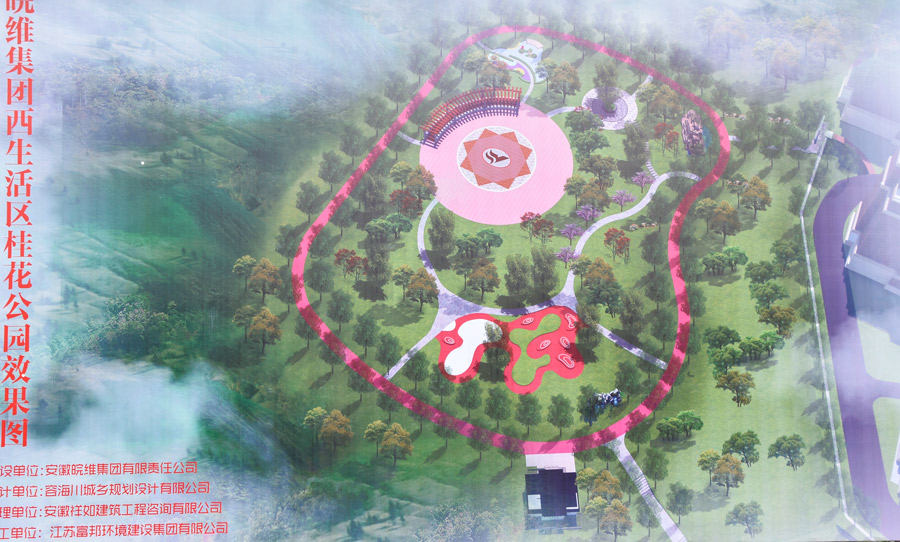 桂花公園位于西區(qū)原皖維宿舍舊址處,占地約1.16萬平方米,工程總造價(jià)約200多萬元,公園包括中心廣場、弧形廊架、桂花大道、觀景平臺(tái)、少兒活動(dòng)場、游覽步道、緩坡樓梯、健身器材、室外照明等。公園立足原有生態(tài)環(huán)境,進(jìn)行佳利用改造,通過合理布局化高差,充分與周圍居住區(qū)銜接,重點(diǎn)突出休閑娛樂功能,力求滿足西區(qū)廣大職工和居民的日常休閑需求,打造自然、和諧、美的生態(tài)休閑公園。