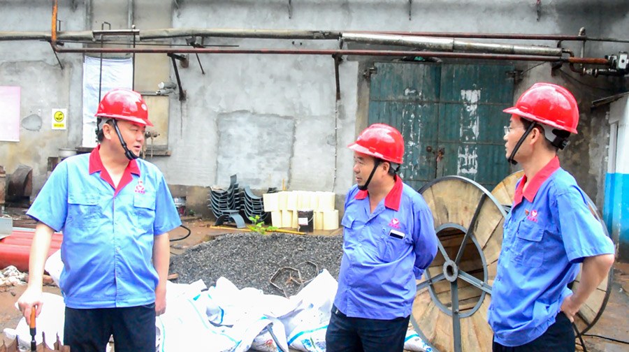 7月21日下午3時(shí)許,天空下起了大雨,集團(tuán)黨委書(shū)記、董事長(zhǎng)吳福勝手撐雨傘,腳穿雨靴,深入化工系統(tǒng)大修現(xiàn)場(chǎng)檢查指導(dǎo)工作。