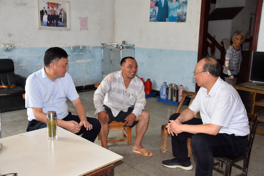 11日大早氣溫就超過(guò)30攝氏度,吳福勝行冒著高溫驅(qū)車(chē)3個(gè)半小時(shí)到達(dá)白紙棚村。下車(chē),吳福勝立即與白紙棚村部分村民舉行座談,充分征求黨員群眾對(duì)脫貧幫扶工作的意見(jiàn)建議。