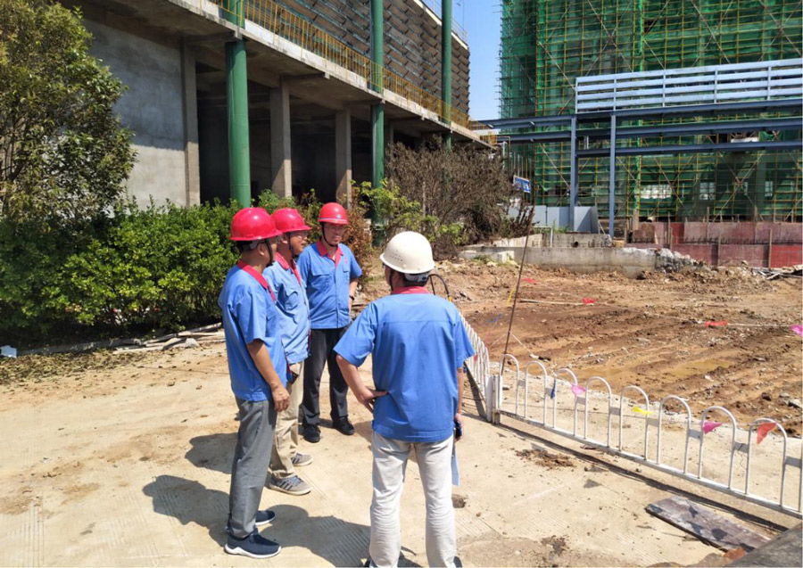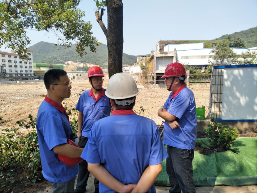 高申保在PVB樹脂項(xiàng)目施工現(xiàn)場檢查罐區(qū)施工情況,聽取項(xiàng)目負(fù)責(zé)人胡安寧匯報(bào)項(xiàng)目推進(jìn)情況及存在的困難,與相關(guān)負(fù)責(zé)人商討解決辦法。