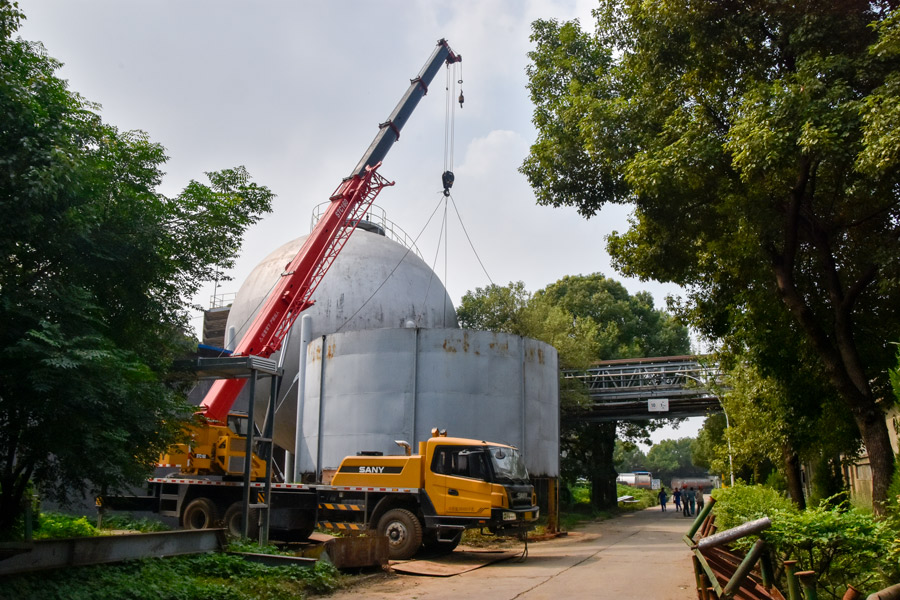此次拆除工作,包含整個水溶纖維生產(chǎn)線、數(shù)百米管道、十臺冰機(jī)、蒸發(fā)器、電纜等,自8月下旬開始拆除,到9月底完成,時間只有40天不到。不僅時間緊、任務(wù)重,而且拆除工作中特種設(shè)備多、特種作業(yè)多,相對來說公司維修工、起重工等特殊工種人員有限,制約了拆除速度。