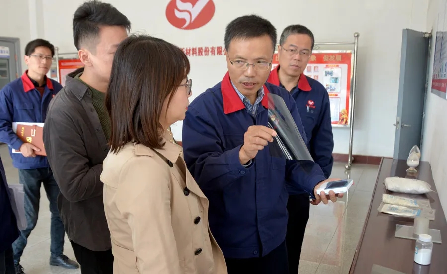 錢文一行首先來到PVA膜分廠。高申保向來賓介紹了公司新建、擬建的重點項目,他表示,當前公司正全力推動產業(yè)轉型升級,以高新技術作為發(fā)展動力,建設行業(yè)世界當先“品質皖維”。公司響應創(chuàng)新驅動發(fā)展戰(zhàn)略,聚焦PVA光學膜等關鍵產品的研發(fā),經過多年研究,已實現(xiàn)了產品產業(yè)化。此外,為進一步攻關高端PVA膜的關鍵重要技術,公司還與中國科學技術大學成立聯(lián)合實驗室,已在多個方面取得重要進展,為產品打破國外壟斷,加速推動顯示行業(yè)國產化作出了皖維貢獻。